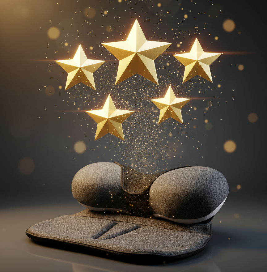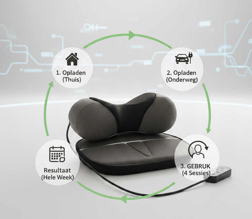 De meeste apparaten maskeren pijn met trillingen. Dit kussen herstelt je houding.
